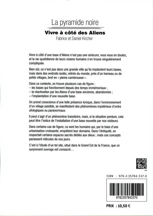Nous le soupçonnions déjà dans notre dernier livre Les mystères du Bitcherland : une base extraterrestre existe bel et bien en Moselle-Est ! Vivre à côté d'une base d'Aliens n'est pas une sinécure, vous vous en doutez, et la vie quotidienne de leurs voisins humains s'en trouve singulièrement compliquée. Bien sûr, ce n'est pas dans une grande ville qu'ils implantent leurs bases, mais dans des endroits isolés, retirés du monde, près d'un hameau ou de petits villages, bref en « pleine cambrousse ». On prend conscience d’une telle présence lorsque, dans l’environnement d’un village paisible, se manifestent des phénomènes mystérieux d’ordre ufologiques ou paranormaux. C’est à l’étude d’un tel site, situé dans le Grand Est de la France, que ce surprenant ouvrage est consacré… Dans le triangle constitué par les communes d’Obergailbach, Petit-Réderching et Epping, l’Espace-Temps est bouleversé, avec des perturbations électromagnétiques à la chaîne et des effets Mandela à répétition. Lumières étranges dans le ciel, hélicoptères fantômes, activité incessante d’OVNIs, allant du banal disque lumineux au gigantesque triangle volant, visions de revenants, d’animaux et d’entités bizarres sont le quotidien des habitants de la région. Des bruits insolites, des secousses sismiques inédites laissent à penser qu’un complexe souterrain tentaculaire, couronné d’une pyramide noire visible en de rares circonstances, a été construit dans cette région par des Aliens au début des années 2000. Les auteurs ont enquêté…
