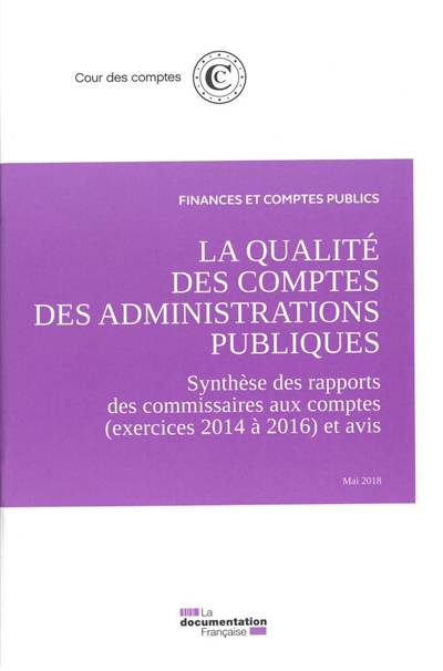 Cet avis, qui porte sur les évolutions des comptes entre les exercices 2013 et 2016, est l'un des volets de la mission confiée à la Cour de s'assurer de la qualité des comptes des administrations publiques aux côtés de sa mission de certification des comptes de l'État et de la sécurité sociale.