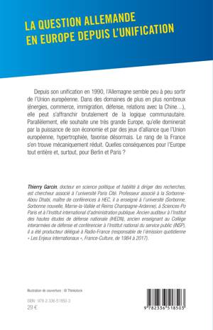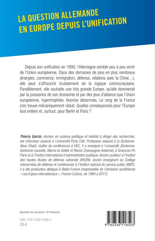 Depuis son unification en 1990, l'Allemagne semble peu à peu sortir de l'Union européenne. Dans des domaines de plus en plus nombreux (énergies, commerce, immigration, défense, relations avec la Chine...), elle peut s'affranchir brutalement de la logique communautaire. Parallèlement, elle souhaite une très grande Europe, qu'elle dominerait par la puissance de son économie et par des jeux d'alliance que l'Union européenne, hypertrophiée, favorise désormais. Le rang de la France s'en trouve mécaniquement réduit. Quelles conséquences pour l'Europe tout entière et, surtout, pour Berlin et Paris ?