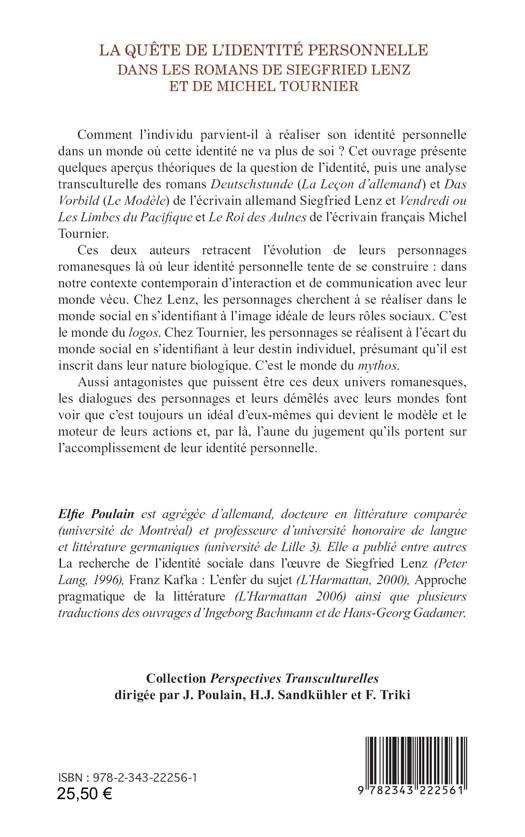 Comment l’individu parvient-il à réaliser son identité personnelle dans un monde où cette identité ne va plus de soi ? Cet ouvrage présente quelques aperçus théoriques de la question de l’identité, puis une analyse transculturelle des romans Deutschstunde (La Leçon d’allemand) et Das Vorbild (Le Modèle) de l’écrivain allemand Siegfried Lenz et Vendredi ou Les Limbes du Pacifique et Le Roi des Aulnes de l’écrivain français Michel Tournier. Aussi antagonistes que puissent être leur univers romanesque respectif, les dialogues des personnages et leurs démêlés avec leurs mondes font voir que c’est toujours un idéal d’eux-mêmes qui devient le modèle et le moteur de leurs actions et, par là, l’aune du jugement qu’ils portent sur l’accomplissement de leur identité personnelle.