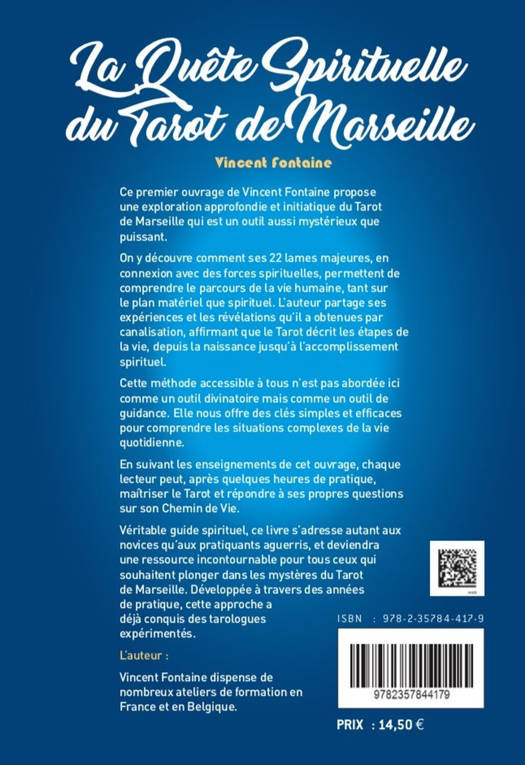 Ce premier ouvrage de Vincent Fontaine propose une exploration approfondie et initiatique du Tarot de Marseille qui est un outil aussi mystérieux que puissant. On y découvre comment ses 22 lames majeures, en connexion avec des forces spirituelles, permettent de comprendre le parcours de la vie humaine, tant sur le plan matériel que spirituel. L'auteur partage ses expériences et les révélations qu’il a obtenues par canalisation, affirmant que le Tarot décrit les étapes de la vie, depuis la naissance jusqu'à l'accomplissement spirituel. Cette méthode accessible à tous n’est pas abordée ici comme un outil divinatoire mais comme un outil de guidance. Elle nous offre des clés simples et efficaces pour comprendre les situations complexes de la vie quotidienne. En suivant les enseignements de cet ouvrage, chaque lecteur peut, après quelques heures de pratique, maîtriser le Tarot et répondre à ses propres questions sur son Chemin de Vie. Véritable guide spirituel, ce livre s'adresse autant aux novices qu'aux pratiquants aguerris, et deviendra une ressource incontournable pour tous ceux qui souhaitent plonger dans les mystères du Tarot de Marseille. Développée à travers des années de pratique, cette approche a déjà conquis des tarologues expérimentés.