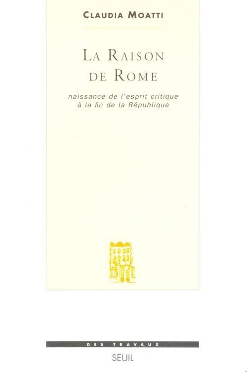 Comment penser lorsque les valeurs anciennes et les institutions vacillent ? Comment constituer un État, une mémoire, à partir d’une multitude de peuples et de cultures ? Contre l’éclatement, le désordre et la crise, les Romains en appellent à la Raison, tout à la fois norme, principe de pensée, méthode d’organisation et de classification ; il s découvrent la critique, la pluralité, l’abstraction, cherchent des catégories générales susceptibles de quadriller le réel et d’en appréhender la diversité.