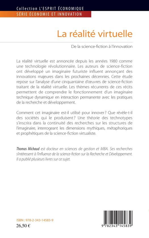 La réalité virtuelle est annoncée depuis les années 1980 comme une technologie révolutionnaire. Les auteurs de science-fiction ont développé un imaginaire futuriste. Cette étude repose sur l'analyse d'une cinquantaine d'oeuvres de science-fiction traitant de la réalité virtuelle, permettant de comprendre le fonctionnement d'un imaginaire technique dynamique et en interaction permanente avec les pratiques de la recherche et développement. Comment cet imaginaire est-il utilisé pour innover ? Que révèle-t-il des sociétés qui le produisent ?