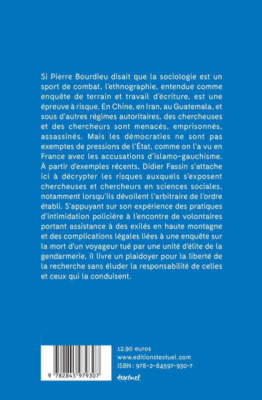 Quand la recherche se révèle être une épreuve à risque. Éric Fassin met ici en lumière la part de risque à laquelle s'exposent les chercheurs et chercheuses en sciences sociales. Il s'appuie pour cela sur son expérience personnelle en France mais aussi sur celles de chercheurs mis en danger pour des raisons politiques à l'international. Il nous alerte sur le risque d'autocensure qui en découle.