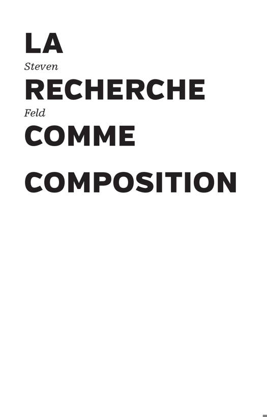 L'enquête ethnographique a toujours été accompagnée par l'enregistrement de matériaux visuels et sonores auxquels les anthropologues donnent plus ou moins forme. Toutefois, rares sont celles et ceux qui considèrent cette création formelle comme une source de connaissance fondamentale. Figure de premier plan de l'anthropologie et des sound studies de langue anglaise, Steven Feld a développé une conception de la recherche comme composition sans égal. Ses œuvres intermédia rendent sensibles différentes manières d'habiter le monde et de recomposer sa mémoire sonore à l'ère de l'anthropocène. Du ruissellement d'une cascade de la forêt équatoriale aux klaxons de la mégalopole d'Accra, en passant par le son des cigales ou la détonation de la bombe atomique, les deux essais inédits de cet ouvrage bouleversent les perspectives acoustiques établies et ouvrent le passionnant domaine de la recherche-composition.