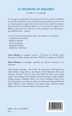Cet ouvrage est exceptionnel. Il ose assumer tout à fait le caractère multiple de la recherche en éducation, en en montrant un grand nombre de facettes, mises en évidence grâce aux apports de plus de trente auteurs, chercheurs réputés, d'une douzaine de nationalités distinctes. Ce sont autant de regards sur les différents aspects de cette recherche, sur des questions ou des dimensions -des problèmes donc- précises.