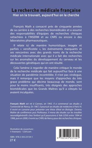 François Math a consacré près de cinquante années de sa carrière à des recherches biomédicales. Il relate ici de manière humoristique, les événements marquants et ses rencontres avec des grands noms de la recherche médicale avec qui il a fait des recherches sur les anomalies du développement du cerveau et les découvertes génétiques qui en ont résulté. Cela l’amène à regarder de manière critique le monde de la recherche médicale qui fait aujourd’hui face à une situation de pandémie incontrôlée. Il n’est pas virologue, mais il remarque que les moyens d’approches du très grave problème qui décime beaucoup de monde, sont pour le moins insuffisants, très éloignés des approches biomédicales que les Grands Maîtres qu’il a côtoyés lui avaient inculquées.