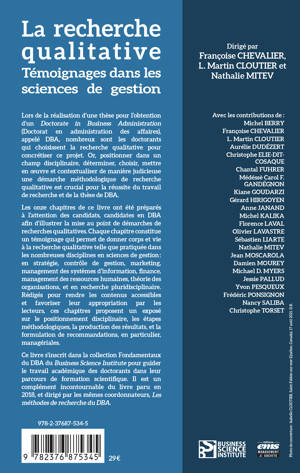 Un guide pour orienter les étudiants en doctorat d'administration des affaires dans leur choix de mener une recherche qualitative dans le cadre de leur thèse. Les contributeurs se proposent de les accompagner dans cette démarche grâce à des témoignages couvrant la diversité des disciplines des sciences de gestion : stratégie, contrôle de gestion, marketing, finance, entre autres.