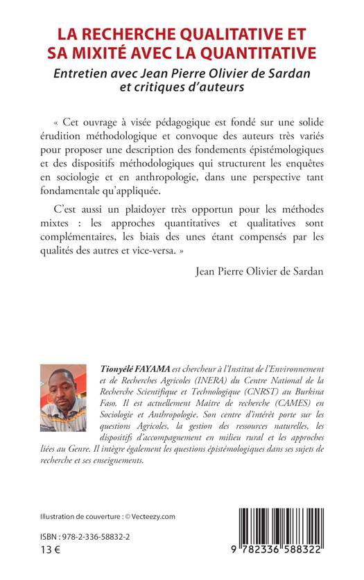 « Cet ouvrage à visée pédagogique est fondé sur une solide érudition méthodologique et convoque des auteurs très variés pour proposer une description des fondements épistémologiques et des dispositifs méthodologiques qui structurent les enquêtes en sociologie et en anthropologie, dans une perspective tant fondamentale qu’appliquée. C’est aussi un plaidoyer très opportun pour les méthodes mixtes : les approches quantitatives et qualitatives sont complémentaires, les biais des unes étant compensés par les qualités des autres et vice-versa. » (Jean Pierre OLIVIER DE SARDAN)