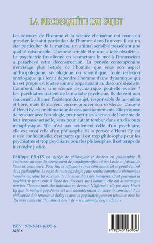La pensée contemporaine n'envisage plus l'étude de l'homme que sous son aspect anthropologique, sociologique ou scientifique. Toute réflexion ontologique qui ferait dépendre l'homme d'une dynamique qui lui est propre est rejetée comme appartenant au discours idéaliste. Comment, alors, une science psychiatrique peut-elle exister ? Les psychiatres doivent non seulement affirmer l'existence du sujet, responsable de lui-même et libre, mais ils doivent encore prouver son existence. L'uvre d'Henri Ey propose de renouer avec l'ontologie, pour sortir les sciences de l'homme de leur impasse actuelle, sans pour autant tomber dans un discours métaphysique.