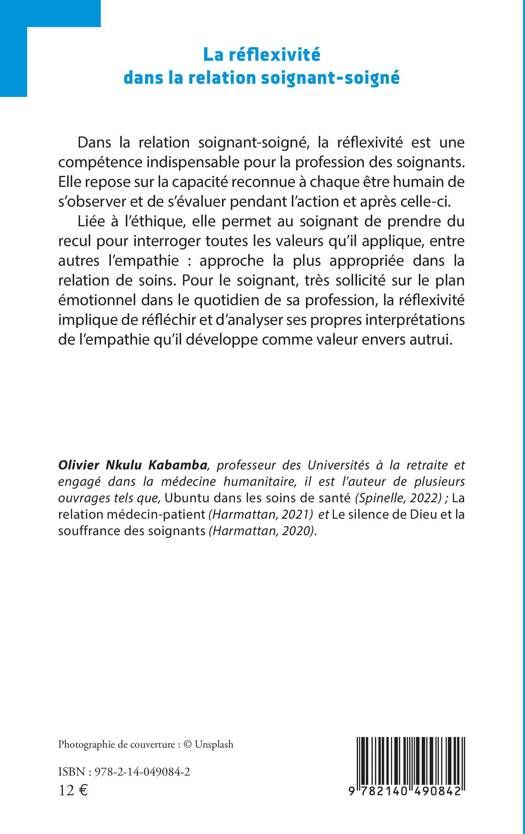 Dans la relation soignant-soigné, la réflexivité est une compétence indispensable pour la profession des soignants. Elle repose sur la capacité reconnue à chaque être humain de s'observer et de s'évaluer pendant l'action et après celle-ci. Liée à l'éthique, elle permet au soignant de prendre du recul pour interroger toutes les valeurs qu'il applique, entre autres l'empathie: approche la plus appropriée dans la relation de soins. Pour le soignant, très sollicité sur le plan émotionnel dans le quotidien de sa profession, la réflexivité implique de réfléchir et d'analyser ses propres interprétations de l'empathie qu'il développe comme valeur envers autrui.