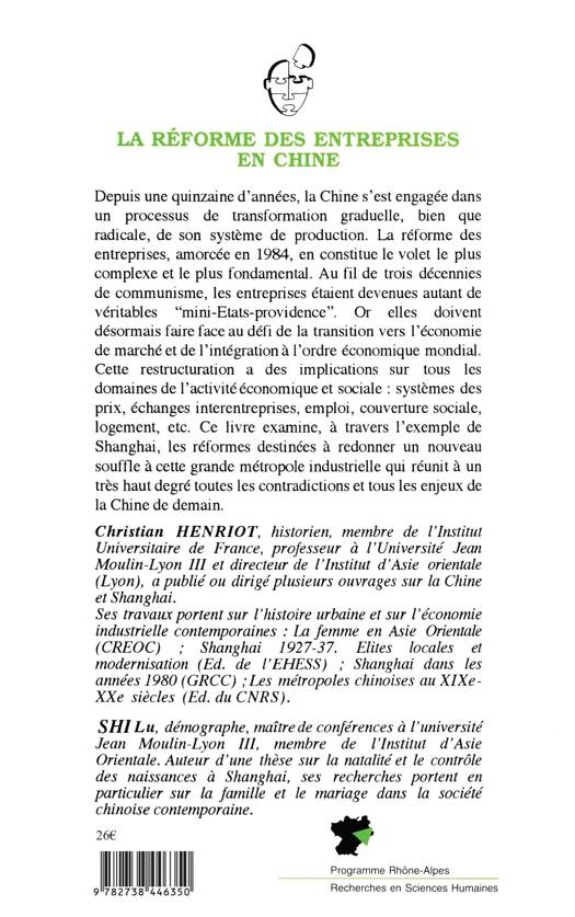 Depuis une quinzaine d'années, la Chine s'est engagée dans un processus de transformation graduelle, bien que radicale, de son système de production. La réforme des entreprises, amorcée en 1984, en constitue le volet le plus complexe et le plus fondamental. Au fil de trois décennies de communisme, les entreprises étaient devenues autant de véritables "mini-Etats-providence". Or elles doivent désormais faire face au défi de la transition vers l 'économie de marché et de l'intégration à l'ordre économique mondial. Cette restructuration a des implications sur tous les domaines de l'activité économique et sociale: systèmes des prix, échanges interentreprises, emploi, couverture sociale, logement, etc. Ce livre examine, à travers l'exemple de Shanghai, les réformes destinées à redonner un nouveau souffle à cette grande métropole industrielle qui réunit à un très haut degré toutes les contradictions et tous les enjeux de la Chine de demain.