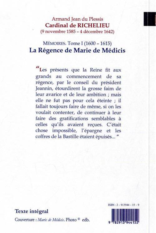 « Les présents que la Reine fit aux grands au commencement de sa régence, par le conseil du président Jeannin, étourdirent la grosse faim de leur avarice et de leur ambition ; mais elle ne fut pas pour cela éteinte ; il fallait toujours faire de même, si on les voulait contenter, de continuer à leur faire des gratifications semblables à celles qu'ils avaient reçues. C'était chose impossible, l'épargne et les coffres de la Bastille étaient épuisés... »