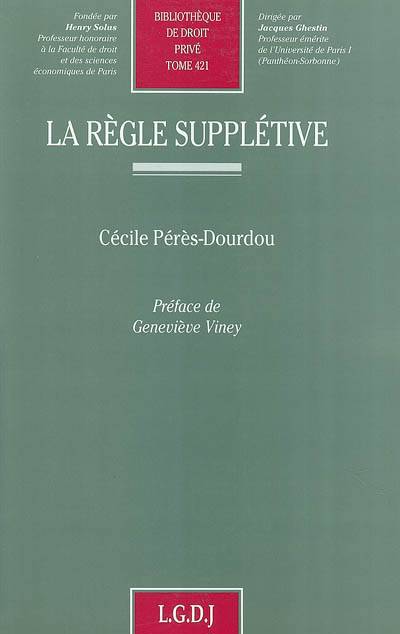 Jusqu'à présent, aucune étude d'ensemble n'avait été consacrée à la règle supplétive. Parée des signes de l'évidence, la règle supplétive est habituellement définie de manière purement négative comme la règle de droit qui, n'étant pas impérative, ne s'applique que lorsque les particuliers ne l'ont pas écartée. À ce titre, elle épuiserait à elle seule l'ensemble des manifestations de la liberté dont jouissent les sujets de droit dans l'application des règles de droit, et elle donnerait à voir une liberté absolue, cette forme de règles n'érigeant, par hypothèse, aucun obstacle à l'expression, souhaitée et conçue le plus largement possible, de la volonté individuelle.