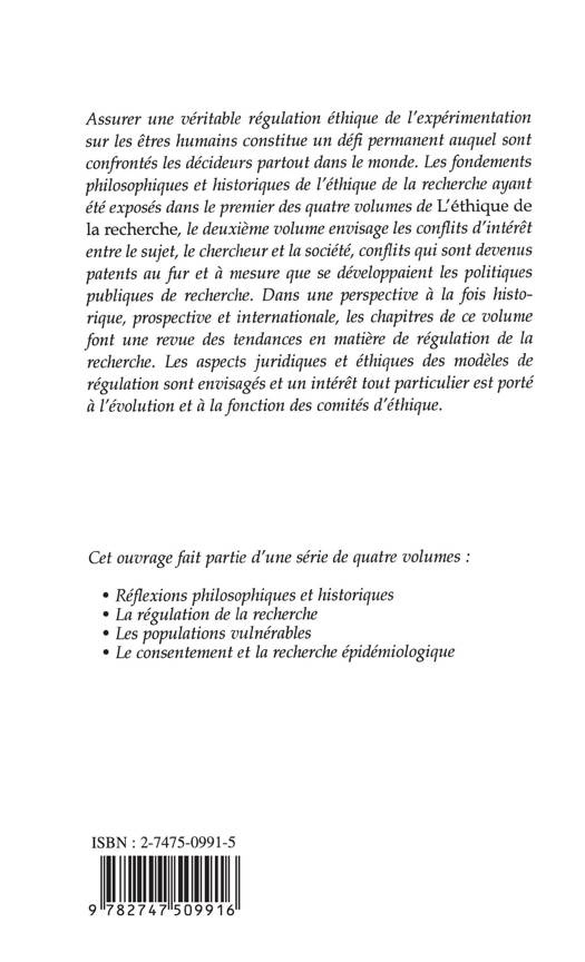 Assurer une véritable régulation éthique de l'expérimentation sur les êtres humains constitue un défi permanent auquel sont confrontés les décideurs partout dans le monde. Les conflits d'intérêt entre le sujet, le chercheur et la société sont devenus patents. Dans une perspective historique, prospective et internationale, les auteurs font une revue des tendances en matière de régulation de la recherche. Ils abordent notamment les aspects juridiques et éthiques des modèles de régulation, et l'évolution et la fonction des comités d'éthique.