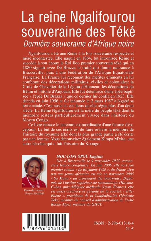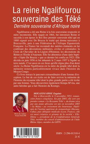 Ngalifourou a été une Reine à la fois souveraine respectée et mère incontestée. Elle naquit en 1864, fut intronisée Reine et succéda à son époux le Roi Iloo qui, en 1880, signait avec De Brazza le traité qui donna naissance à Brazzaville. Décédée en 1956, la reine Ngalifourou est la mère du peuple téké dont la mémoire restera particulièrement vivace dans l'histoire du Moyen Congo. Ce livre retrace le parcours extraordinaire d'une femme d'exception.