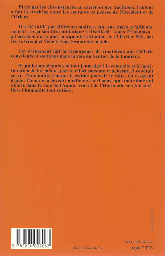 Sommaire : Le caractère illusoire des situations et des choses La libération spirituelle ou réintégration divine Avons-nous notre libre arbitre ? Entre dans la voie du yoga Dix-sept clés pour la reintégration divine La notion de mantra et le son OM Le japa-yoga : une voie simple de réalisation Christianisme et yoga Nécessité de l'effort et de l'ascèse