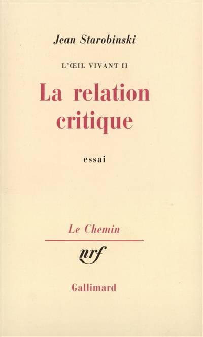 Suite de L'oeil vivant, cet ouvrage est consacré à la critique. Jean Starobinsky s'attache à établir les principes d'une critique de la relation, capable de coordonner les méthodes de la stylistique, de l'histoire des idées et de la psychanalyse. Une nouvelle interprétation d'un épisode des Confessions de Rousseau illustre le rapport de la théorie critique et de son application. Qu'est-ce qu'interpréter ? C'est déchiffrer, et c'est aussi imaginer. La deuxième partie passe donc en revue les divers champs de l'imagination : la parole, l'image, le corps. Et la troisième, traitant des rapports de la littérature et de la psychanalyse, pose une question déconcertante : quelle est la part d'imaginaire qui s'immisce dans la lecture psychanalytique ? Comme toujours, Jean Starobinski se révèle un maître-lecteur, qui incite à lire ou relire les grands livres.