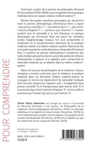 Comment, à partir de la pensée du philosophe allemand Emmanuel Kant (1724-1804), peut-on appréhender la pratique médicale dans son aspect relation médecin-patient ? Partant des quatre questions principales qui structurent toute la pensée philosophique d'Emmanuel Kant, à savoir que puis-je connaître ?, que dois-je faire ?, que m'est-il permis d'espérer ?, qu'est-ce que l'homme ?, l'auteur soutient que la rationalité à la fois théorique et pratique développée par Emmanuel Kant est parmi les véritables écoles d'apprentissage lorsque l'on veut comprendre le fondement et le fonctionnement rationnels de la pratique médicale relative à la relation médecin-patient.