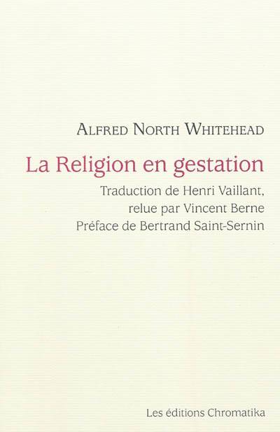 Le philosophe et algébriste britannique Alfred North White-head (1861-1947) est une figure marquante de la pensée XXe siècle. Sa Religion en gestation (1926), héritière directe des Varieties of Religious Experience (1902) de W. James, reprend la question de la religiosité - c'est-à-dire de la religion vécue, pas de la religion en tant qu'institution - en l'articulant avec les exigences de la rationalité scientifique.