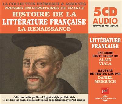 La littérature française de la Renaissance racontée, expliquée et analysée par A. Viala, professeur à l'université de Paris-Sorbonne, dans un cours didactique, avec des extraits lus par le comédien D. Mesguich. De la naissance à la diffusion de l'imprimerie, du monde de Rabelais à l'humanisme, une découverte vivante de cette époque et de ses oeuvres.