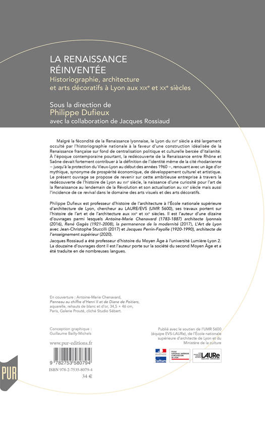 La redécouverte de la Renaissance à Lyon a fortement contribué à la définition de l'identité de la cité rhodanienne jusqu'à la protection du Vieux-Lyon au début des années 1960. Cet ouvrage expose cette ambitieuse entreprise, la curiosité pour l'art de la Renaissance au lendemain de la Révolution et son actualisation au XIXe siècle mais aussi l'incidence de ce revival dans le domaine des arts visuels et des arts décoratifs.