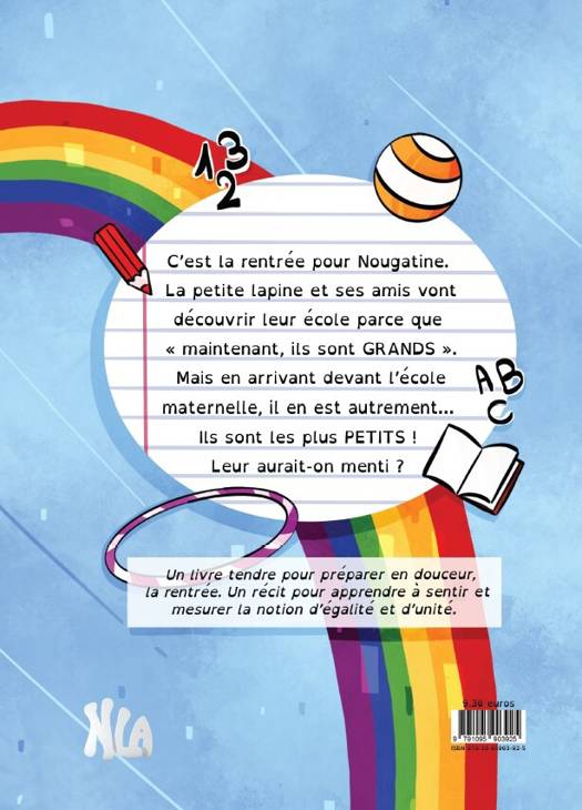 c'est la rentrée pour Nougatine et ses amis. Ils vont découvrir leur école parce que "maintenant, ils sont GRands". Mais en arrivant devant l'école maternelle, il en est autrement.... Ils sont les plus PETITS ! Leur aurait-on menti ?