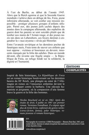 En 1945, alors que le Reich s'effondre, Freia, infirmière allemande, tente de sauver des enfants aux destins opposés non loin de Berlin : juifs cachés, orphelins de guerre et jeunes nazis. Face à l'avancée soviétique, elle crée un refuge éphémère, la République de Freia, où la solidarité et l'humanité défient la barbarie. Un récit inspiré de faits réels.