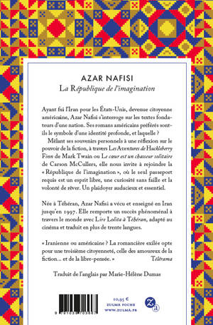 Dix ans après son best-seller Lire Lolita à Téhéran, Azar Nafisi relève le défi lancé par un lecteur lors d’une rencontre à Seattle : contrairement aux Iraniens, les Américains ne s’intéresseraient pas aux livres, le pouvoir de la fiction ne concernerait pas les États- Unis. Avec énergie et conviction, Azar Nafisi répond à ceux qui prétendent que la littérature n’a rien à nous apprendre. Mêlant réflexions, souvenirs et controverses à la lecture attentive de ses romans américains préférés – Les Aventures de Huckleberry Finn de Mark Twain, Le cœur est un chasseur solitaire de Carson McCullers et La Conversion de James Baldwin –, elle nous invite à rejoindre la « République de l’imagination », un pays uni contre le conformisme et l’orthodoxie, où le seul passeport requis est un esprit libre, une curiosité sans faille et la volonté de rêver. En ces temps troublés, à l’heure où Donald Trump revient au pouvoir, La République de l’imagination est un plaidoyer audacieux et essentiel.