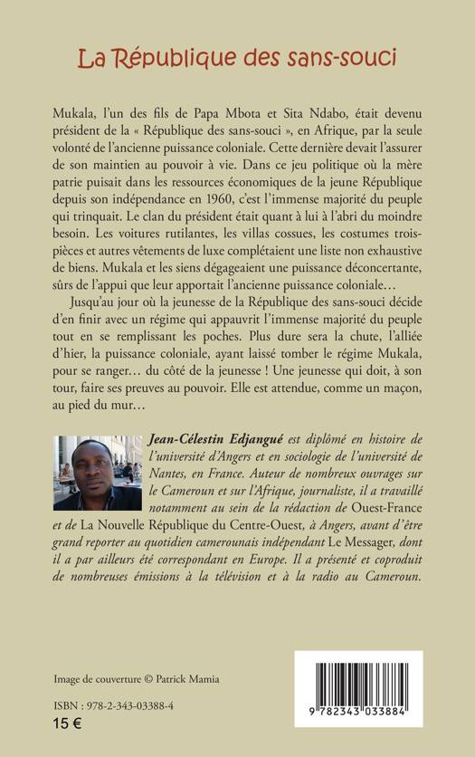 Mukala était devenu président de la "République des sans-souci", en Afrique, par la seule volonté de l'ancienne puissance coloniale. Cette dernière devait l'assurer de son maintien au pouvoir à vie. Dans ce jeu politique où la mère patrie puisait dans les ressources économiques de la jeune République depuis son indépendance en 1960, c'est l'immense majorité du peuple qui trinquait. Jusqu'au jour où la jeunesse de la République des sans-souci décide d'en finir avec un régime qui appauvrit le peuple tout en se remplissant les poches...