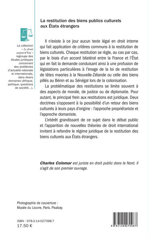 5. La restitution des biens publics culturels aux États étrangers