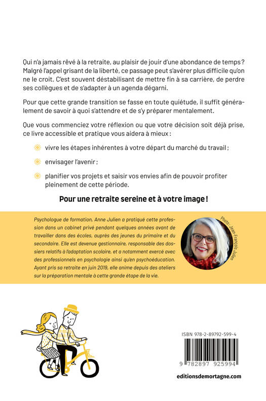 Qui n’a jamais rêvé à la retraite, au plaisir de jouir de son temps ? Malgré l’appel grisant de la liberté, ce passage peut s’avérer plus difficile qu’on ne le croit. C’est souvent déstabilisant de mettre fin à sa carrière, perdre ses collègues et s’adapter à un agenda dégarni. Pour que cette grande transition se fasse en toute sérénité, il suffit de savoir à quoi s’attendre et de s’y préparer mentalement. Que vous débutiez votre réflexion ou que votre décision soit déjà prise, ce livre accessible et pratique vous aidera à : mieux vivre les étapes inhérentes à votre retrait du marché du travail ; mieux envisager l’avenir ; mieux planifier votre retraite afin de pouvoir en profiter pleinement.