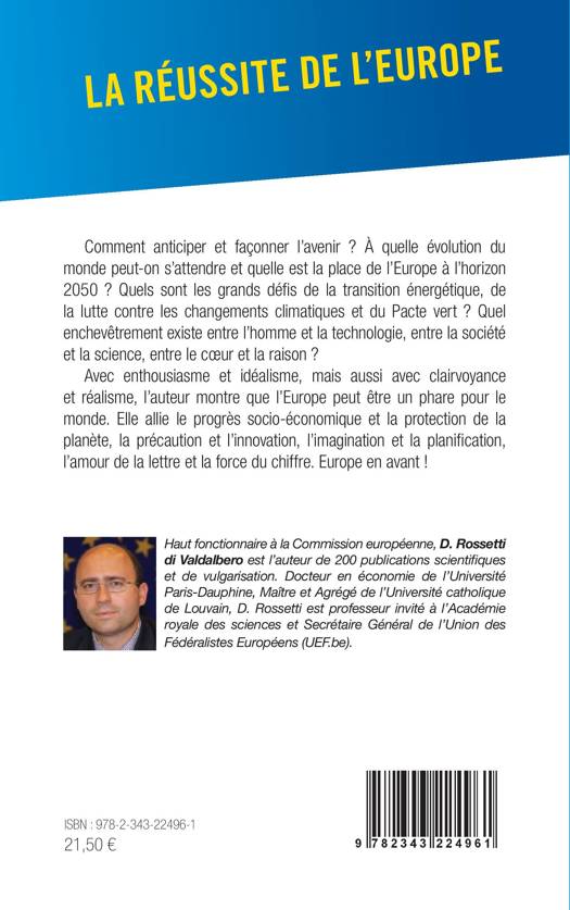 Comment anticiper et façonner l'avenir ? À quelle évolution du monde peut-on s'attendre et quelle est la place de l'Europe à l'horizon 2050 ? Quels sont les grands défis de la transition énergétique, de la lutte contre les changements climatiques et du Pacte vert ? Quel enchevêtrement existe entre l'homme et la technologie, entre la société et la science, entre le coeur et la raison ? Avec enthousiasme et idéalisme, mais aussi avec clairvoyance et réalisme, l'auteur montre que l'Europe peut être un phare pour le monde. Elle allie le progrès socio-économique et la protection de la planète, la précaution et l'innovation, l'imagination et la planification, l'amour de la lettre et la force du chiffre. Europe en avant !