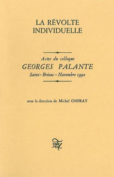 Un hommage à l'auteur de L'Individu en détresse, de Combat pour l'individu et de la Sensibilité individualiste. Loin du néo-kantisme, Palante manifestait la permanence d'une revendication, une sensibilité qui fait de l'individu le centre de ses préoccupations.
