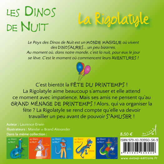 C’est bientôt la Fête du Printemps !<br /><br /> La Rigolatyle aime beaucoup s’amuser et elle attend ce moment avec impatience.<br /><br /> Mais ses amis ne pensent qu’au Grand Ménage de Printemps ! Alors, qui va organiser la fête ?<br /><br /> La Rigolatyle se rend compte qu’elle va devoir travailler un peu avant de pouvoir s’amuser !<br /><br /> [La Rigolatyle est un dilophosaure.]
