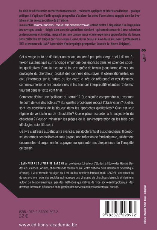 Cet ouvrage, méthodologique propose une réflexion systématique sur l’ancrage empirique des énoncés dans les sciences sociales qualitatives, en s’interrogeant sur la nature du lien entre le « réel de référence » et ces données, comme sur le lien entre ces données et les énoncés interprétatifs et autres « théories » figurant dans le texte écrit final.