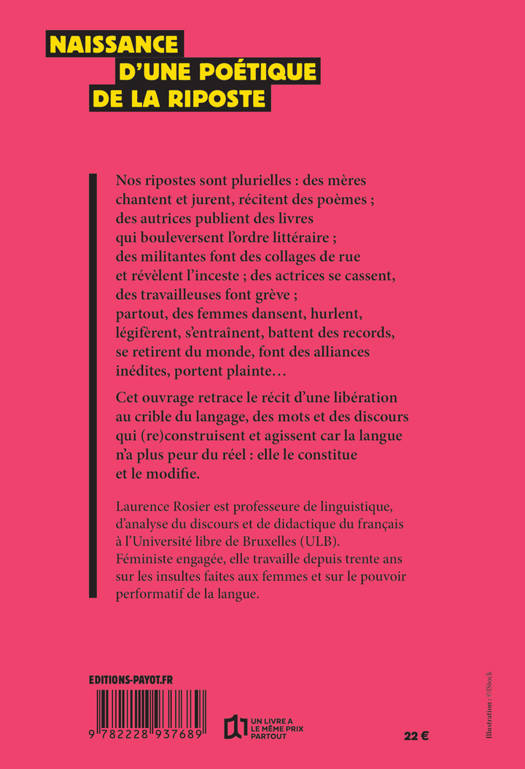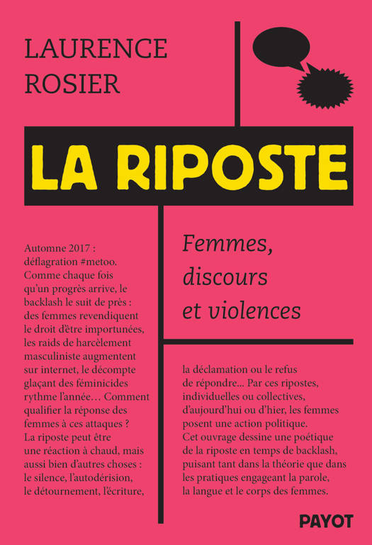 L'image classique de la riposte est une réaction à chaud, empruntant les mêmes chemins rhétoriques que l'attaque. Mais cela peut heureusement être mille autres choses : le silence, l'autodérision, le détournement, l'écriture, la déclamation ou le refus de répondre... De tous temps, des femmes ont fait riposte - de façon individuelle ou collective, par l'action ou la création - et, ce faisant, ont posé une action politique. Cet ouvrage dessine une poétique de la riposte en temps de backlash, puisant tant dans la théorie que dans les pratiques engageant la parole, la langue et le corps des femmes.