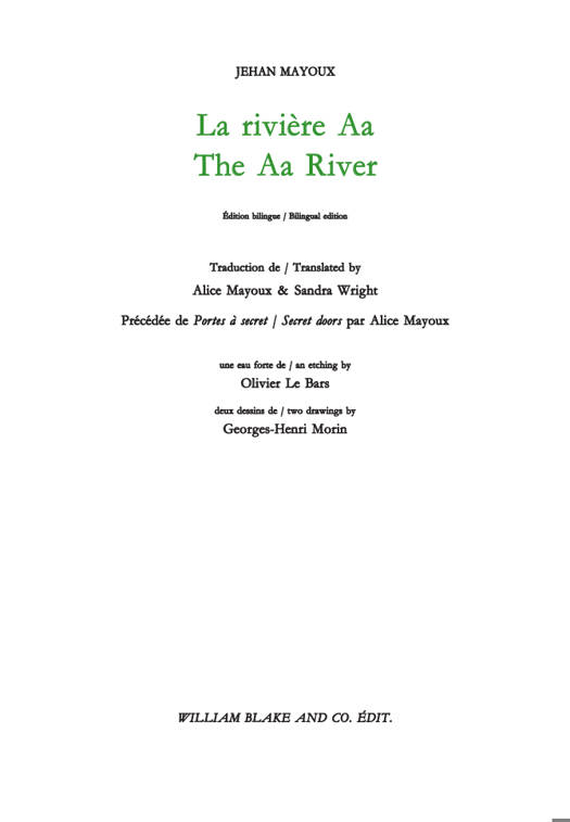 Réunis par l'amitié, l'éditeur de ce livre, les illustrateurs et les traductrices de La rivière Aa, ont voulu exprimer leur attachement au souvenir de Jehan Mayoux et leur admiration pour son oeuvre poétique.