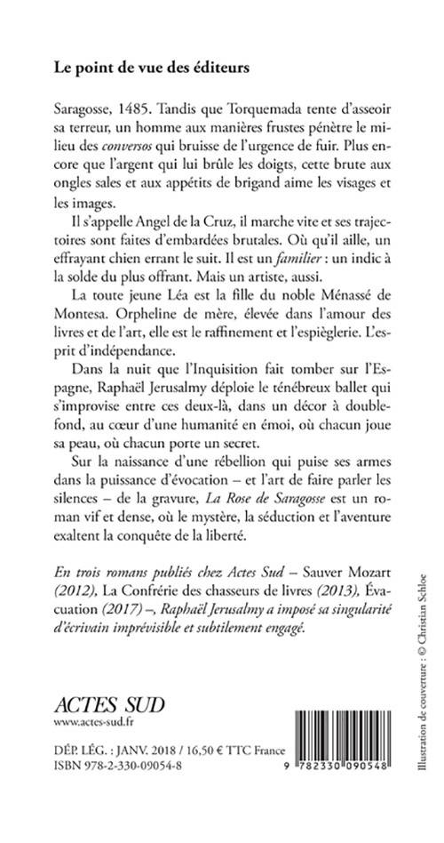 Dans la nuit que l'Inquisition fait tomber sur l'Espagne, Raphaël Jerusalmy déploie le ténébreux ballet qui s'improvise entre ces deux-là, dans un décor à double-fond, au coeur d'une humanité en émoi, où chacun joue sa peau, où chacun porte un secret.