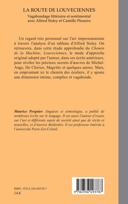 Un regard très personnel sur l'art impressionniste à travers l'analyse d'un tableau d'Alfred Sisley. On retrouvera, dans cette étude approfondie du Chemin de la Machine, Louveciennes, le mode d'approche original adopté par l'auteur, dans ses écrits antérieurs, pour révéler les précieux secrets d'oeuvres de Michel-Ange, De Chirico, Magritte et quelques autres. Mais, en empruntant ici le chemin des écoliers, il y ajoute une dimension intime, complice et vagabonde.