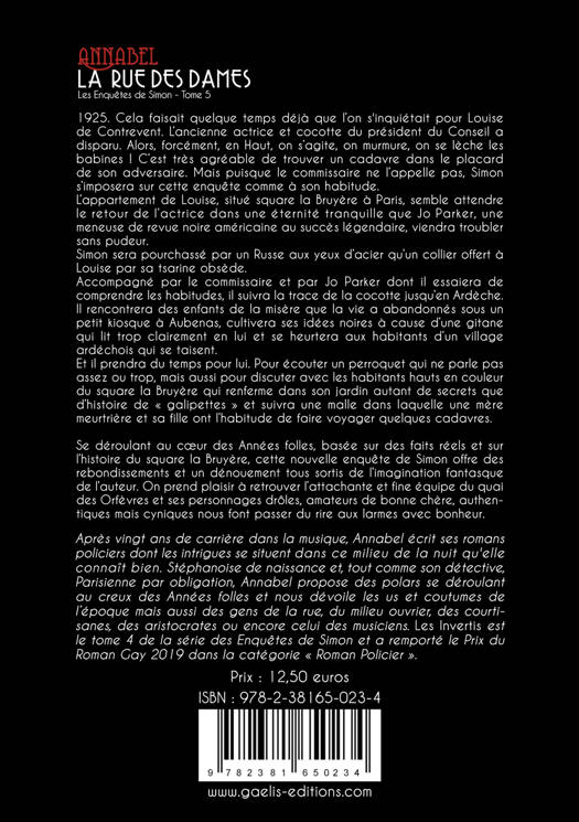 1925Cela faisait quelque temps déjà que l’on s'inquiétait pour Louise de Contrevent. L’ancienne actrice et cocotte du président du Conseil a disparu. Alors, forcément, en Haut, on s’agite, on murmure, on se lèche les babines ! C’est très agréable de trouver un cadavre dans le placard de son adversaire. Mais puisque le commissaire ne l’appelle pas, Simon s’imposera sur cette enquête comme à son habitude. L’appartement de Louise, situé square la Bruyère à Paris, semble attendre le retour de l’actrice dans une éternité tranquille que Jo Parker, une meneuse de revue noire américaine au succès légendaire, viendra troubler sans pudeur.Simon sera pourchassé par un Russe aux yeux d’acier qu’un collier offert à Louise par sa tsarine obsède. Accompagné par le commissaire et par Jo Parker dont il essaiera de comprendre les habitudes, il suivra la trace de la cocotte jusqu’en Ardèche. Il rencontrera des enfants de la misère que la vie a abandonnés sous un petit kiosque à Aubenas, cultivera ses idées noires à cause d’une gitane qui lit trop clairement en lui et se heurtera aux habitants d’un village ardéchois qui se taisent. Et il prendra du temps pour lui. Pour écouter un perroquet qui ne parle pas assez ou trop, mais aussi pour discuter avec les habitants hauts en couleur du square la Bruyère qui renferme dans son jardin autant de secrets que d’histoire de « galipettes » et suivra une malle dans laquelle une mère meurtrière et sa fille ont l’habitude de faire voyager quelques cadavres. Se déroulant au cœur des Années folles, basée sur des faits réels et sur l’histoire du square la Bruyère, cette nouvelle enquête de Simon offre des rebondissements et un dénouement tous sortis de l’imagination fantasque de l’auteur. On prend plaisir à retrouver l’attachante et fine équipe du quai des Orfèvres et ses personnages drôles, amateurs de bonne chère, authentiques mais cyniques nous font passer du rire aux larmes avec bonheur.