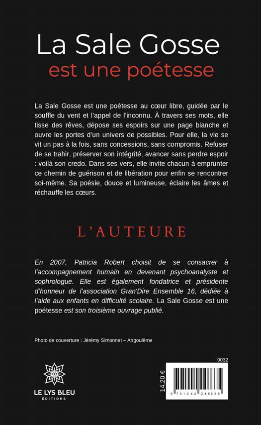 La Sale Gosse est une poétesse au coeur libre, guidée par le souffle du vent et l'appel de l'inconnu. À travers ses mots, elle tisse des rêves, dépose ses espoirs sur une page blanche et ouvre les portes d'un univers de possibles. Pour elle, la vie se vit un pas à la fois, sans concessions, sans compromis. Refuser de se trahir, préserver son intégrité, avancer sans perdre espoir : voilà son credo. Dans ses vers, elle invite chacun à emprunter ce chemin de guérison et de libération pour enfin se rencontrer soi-même. Sa poésie, douce et lumineuse, éclaire les âmes et réchauffe les coeurs.