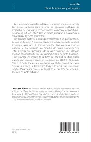 Cet ouvrage s'adresse à ceux qui s'intéressent à un pan méconnu du droit de la santé. À ceux qui étudient l'évolution actuelle du droit, il donnera aussi une illustration détaillée d'un nouveau concept juridique, le flux normatif, un ensemble de normes convergentes. Enfin, il offrira aux spécialistes de la santé publique une réflexion originale et approfondie sur une approche issue de cette discipline.