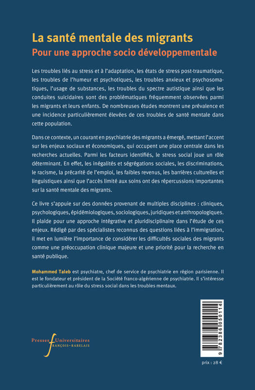 Ce livre s'appuie sur des données provenant de multiples disciplines : cliniques, psychologiques, épidémiologiques, sociologiques, juridiques et anthropologiques. Il plaide pour une approche intégrative et pluridisciplinaire dans l'étude de ces enjeux. Rédigé par des spécialistes reconnus des questions liées à l'immigration, il met en lumière l'importance de considérer les difficultés sociales des migrants comme une préoccupation clinique majeure et une priorité pour la recherche en santé publique.