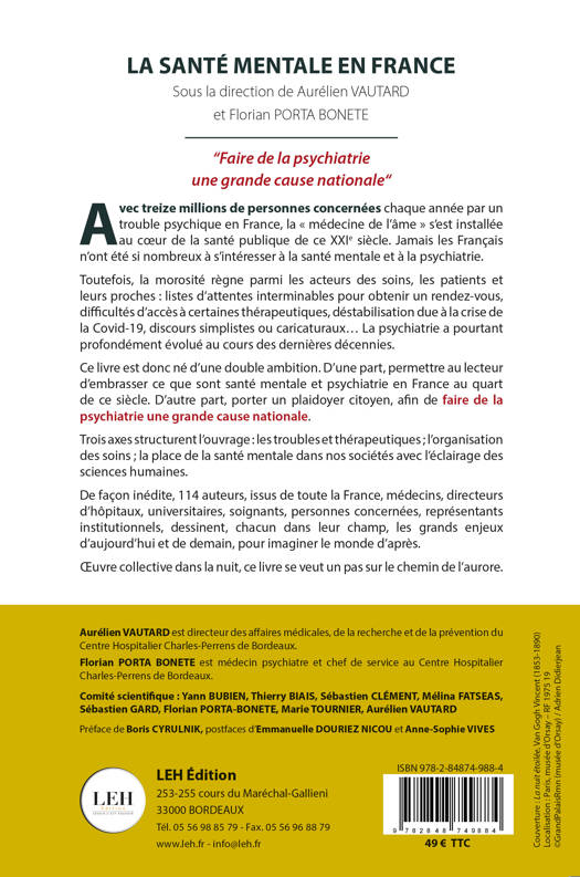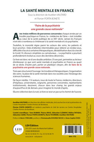 Ce livre est donc né d’une double ambition. D’une part, permettre au lecteur d’embrasser ce que sont santé mentale et psychiatrie en France au quart de ce siècle. D’autre part, porter un plaidoyer citoyen, afin de faire de la psychiatrie une grande cause nationale.