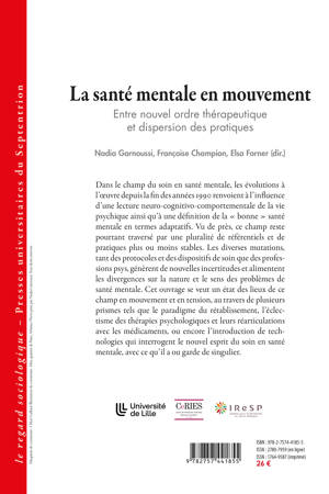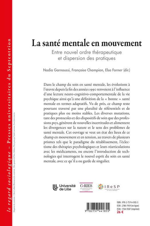 Dans le champ du soin en santé mentale, les évolutions à l’oeuvre depuis la fin des années 1990 renvoient à l’influence d’une lecture neuro-cognitivo-comportementale de la vie psychique ainsi qu’à une définition de la « bonne » santé mentale en termes adaptatifs. Vu de près, ce champ reste pourtant traversé par une pluralité de référentiels et de pratiques plus ou moins stables. Les diverses mutations, tant des protocoles et des dispositifs de soin que des professions psys, génèrent de nouvelles incertitudes et alimentent les divergences sur la nature et le sens des problèmes de santé mentale. Cet ouvrage se veut un état des lieux de ce champ en mouvement et en tension, au travers de plusieurs prismes tels que le paradigme du rétablissement, l’éclectisme des thérapies psychologiques et leurs réarticulations avec les médicaments, ou encore l’introduction de technologies qui interrogent le nouvel esprit du soin en santé mentale, avec ce qu’il a ou garde de singulier.