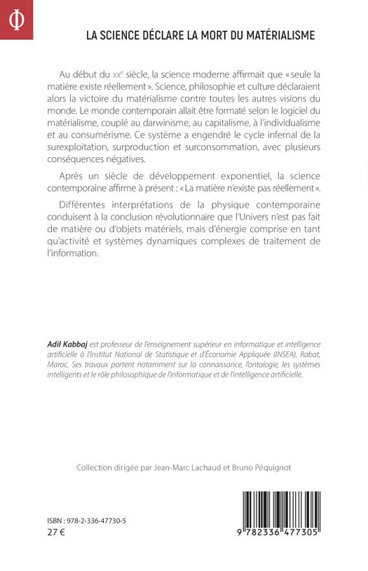 Au début du xxe siècle, la science moderne affirmait que seule la matière existe réellement . Science, philosophie et culture déclaraient alors la victoire du matérialisme contre toutes les autres visions du monde. Le monde contemporain allait être formaté selon le logiciel du matérialisme, couplé au darwinisme, au capitalisme, à l'individualisme et au consumérisme. Ce système a engendré le cycle infernal de la surexploitation, surproduction et surconsommation, avec plusieurs conséquences négatives. Après un siècle de développement exponentiel, la science contemporaine affirme à présent La matière n'existe pas réellement . Différentes interprétations de la physique contemporaine conduisent à la conclusion révolutionnaire que l'Univers n'est pas fait de matière ou d'objets matériels, mais d'énergie comprise en tant qu'activité et systèmes dynamiques complexes de traitement de l'information.
