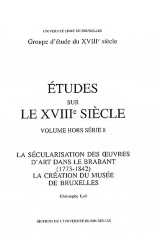 C. Loir analyse le phénomène de sécularisation des oeuvres d'art dans le Brabant à travers les périodes autrichienne, française, hollandaise et le début du Royaume de Belgique. Il étudie les implications politiques, économiques, artistiques et religieuses de ce phénomène entre 1773, année de la suppression des jésuites et 1842, année de de la vente du Musée de la ville de Bruxelles à l'Etat belge.