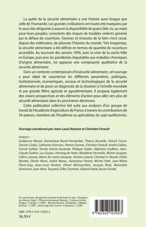 La quête de la sécurité alimentaire est aussi vieille que l’humanité. Toutes les civilisations ont dû répondre au souci d’approvisionner les populations, au risque de conflits. Longtemps mesurée par la quantité, ce facteur a pris une dimension qualitative depuis les pandémies des années 1990, telle la crise de la vache folle. Ces 34 contributions s'efforcent de caractériser les paramètres politiques, institutionnels, économiques, sociaux et technologiques afin de poser un diagnostic à l'échelle mondiale par grandes filières agricoles et agroalimentaires.