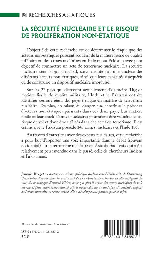 Sur les 22 pays qui disposent actuellement d'au moins 1 kg de matière fissile de qualité militaire, l'Inde et le Pakistan ont été identifiés comme étant des pays à risque en matière de terrorisme nucléaire. De plus, en raison du danger que constitue la présence d'acteurs non-étatiques puissants dans ces deux pays, leur matière fissile et leur stock d'armes nucléaires pourraient être vulnérables au risque de vol et donc être utilisés dans des actes de terrorisme. Il est estimé que le Pakistan possède 145 armes nucléaires et l'Inde 135. Au travers d'entretiens avec des experts nucléaires, cette recherche a pour but d'apporter une voix importante dans le débat (souvent occidental) sur le terrorisme nucléaire en Asie du Sud, voix qui a été relativement peu entendue dans le passé, celle de chercheurs Indiens et Pakistanais.